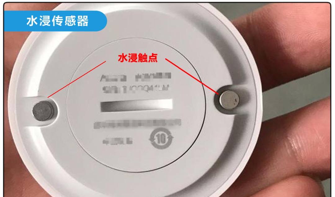 水浸传感器探头只是两个触点,当两个触点间有水时,两个触点导通,水浸传感器报警。